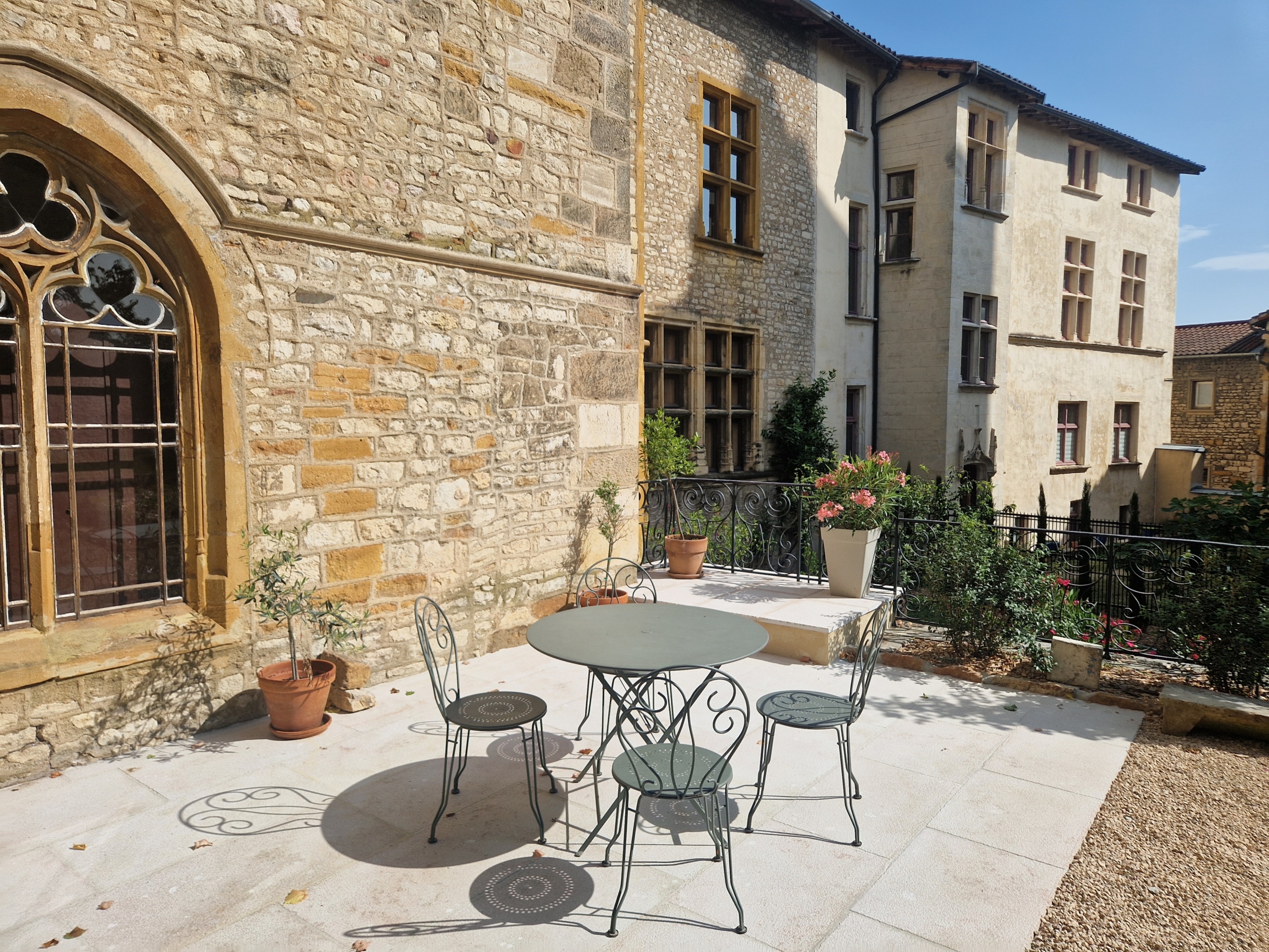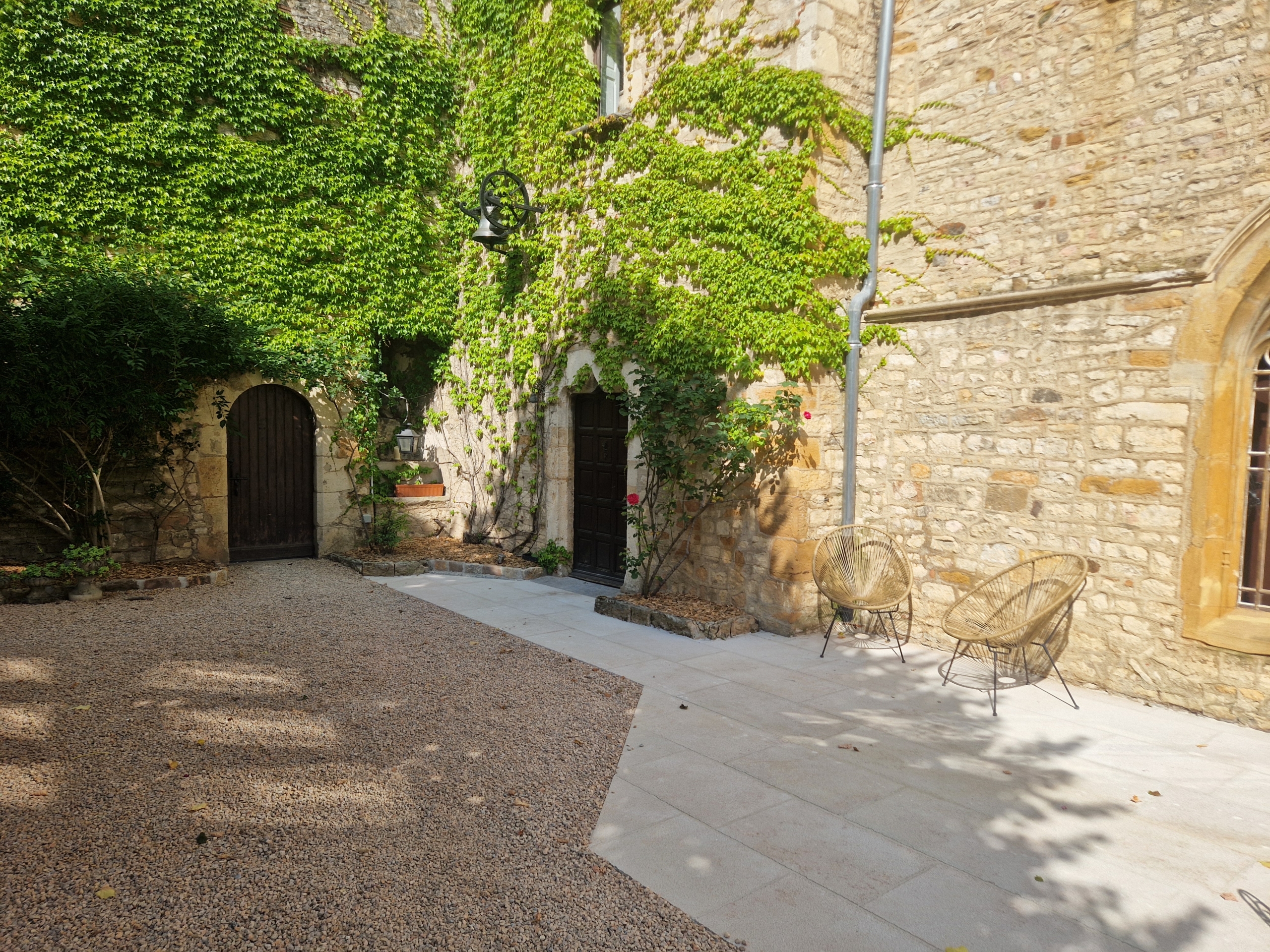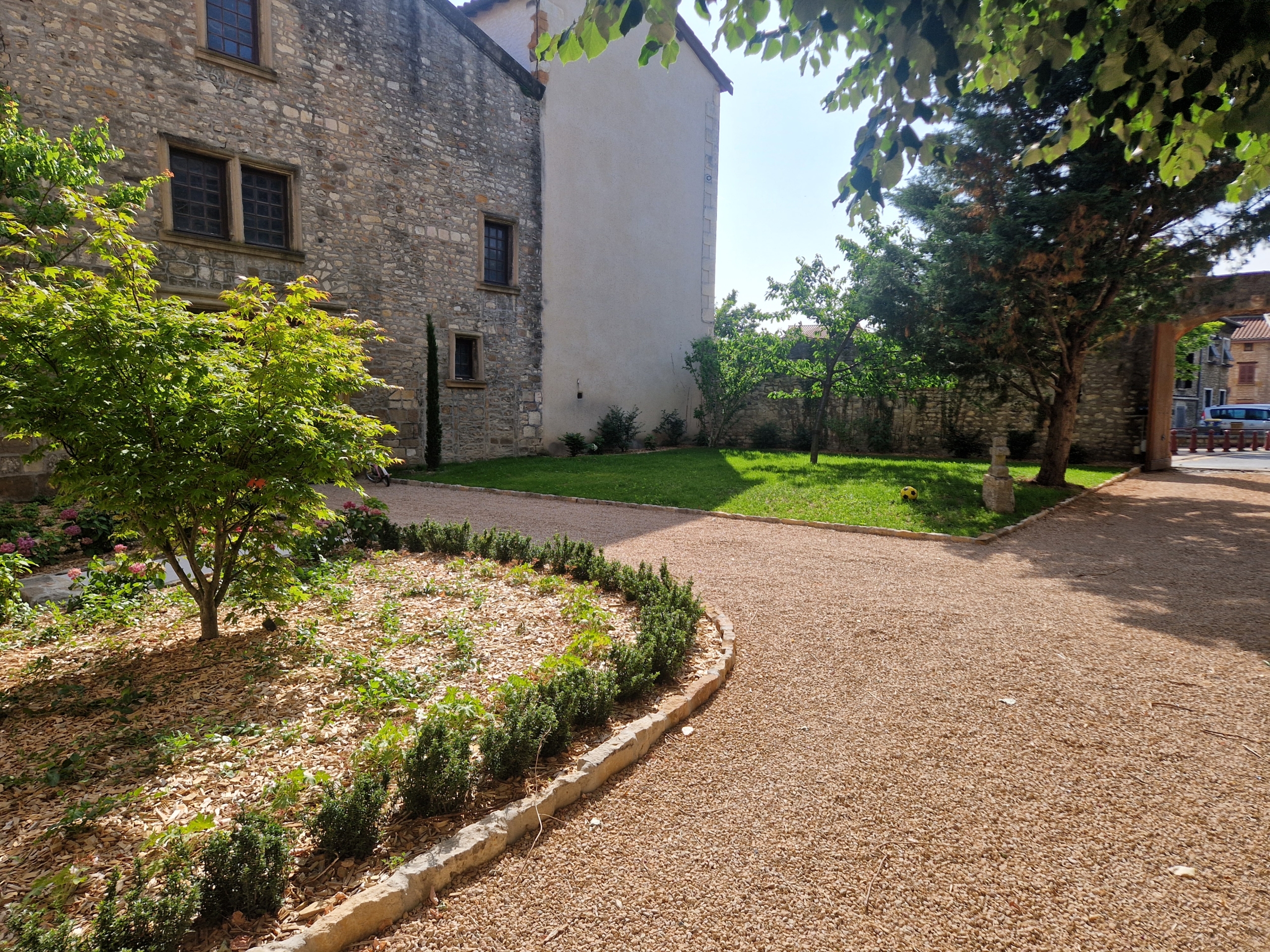 Travaux réalisés par Vert Altitude : conception et réalisation de l’aménagement d’une cour de château.